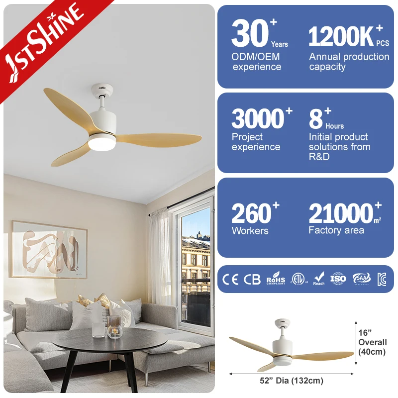 1stshine LED Ceiling Fan Outdoor Cover 3 Plastic Blades Dimmable LED Lighting Ceiling Fan with Remote Control